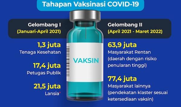 Berita Lansia - Menkes Budi Gunadi Sadikin menjelaskan tenaga kesehatan akan menjadi pihak pertama dalam tahapan vaksinasi disusul petugas publik, lansia, lalu masyarakat lainnya.